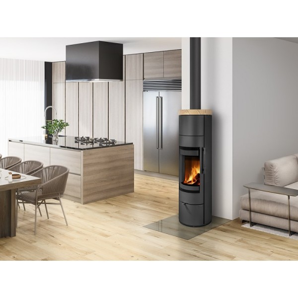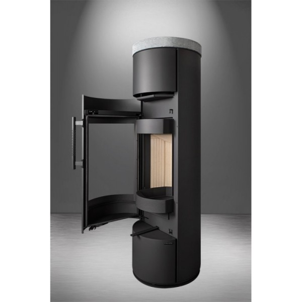 Poêle pivotant à accumulation ALEA : chaleur douce et orientable, design compact pour bûches de 33 cm. Finitions acier, pierre ou céramique. Rotation intégrale et bloc d’accumulation interne de 30 kg pour jusqu’à 5 heures de chaleur supplémentaire et plus d’économies.