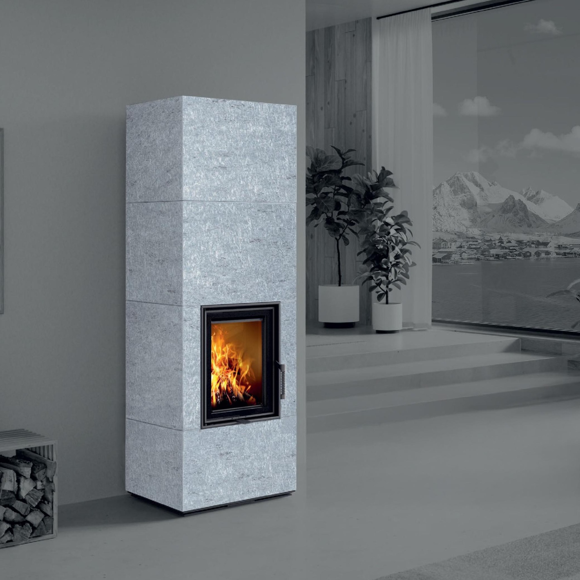 Poêle à bois 7 kW, classe énergétique 7 étoiles, équipé d’un système de double combustion pour un rendement élevé et de faibles émissions.Les poêles MACARIA sont disponibles en plusieurs variantes d'habillage, alliant esthétique et fonction d'accumulation