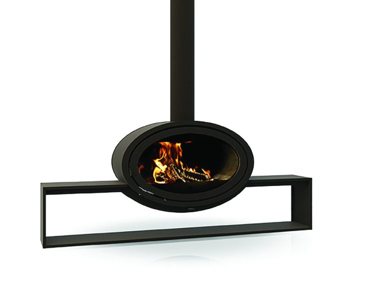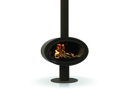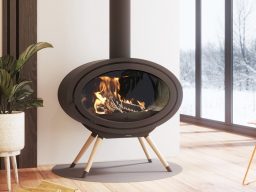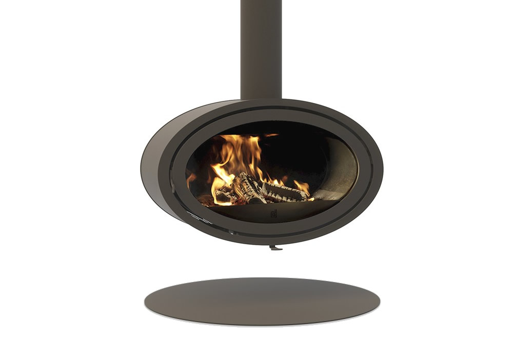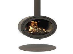Poêle à bois ovale en acier, couleur anthracite.